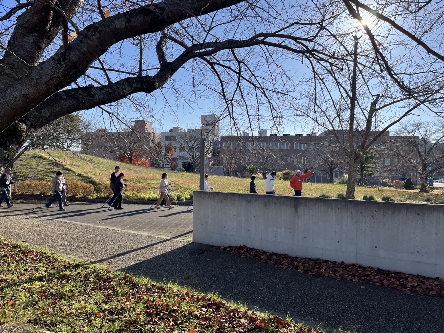 31名でノルディックウォーキングする。