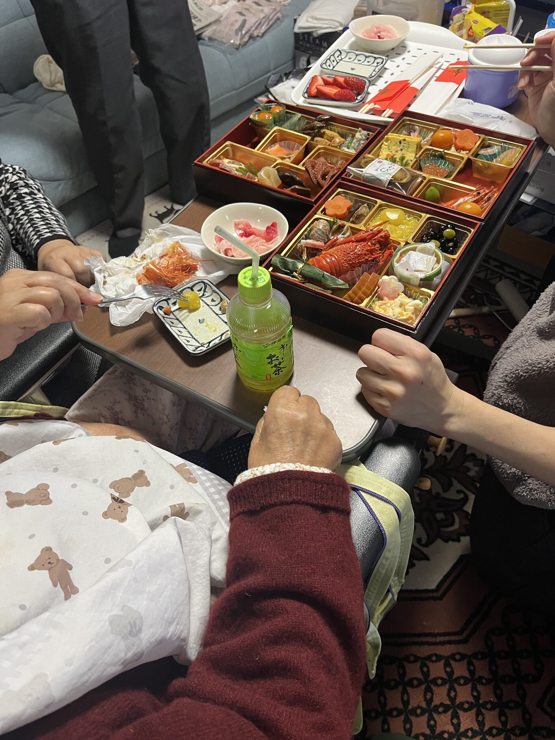 お正月のお節料理を、娘さんご夫婦と、食べることに一生懸命な、