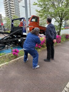 この軽トラで、まずは、