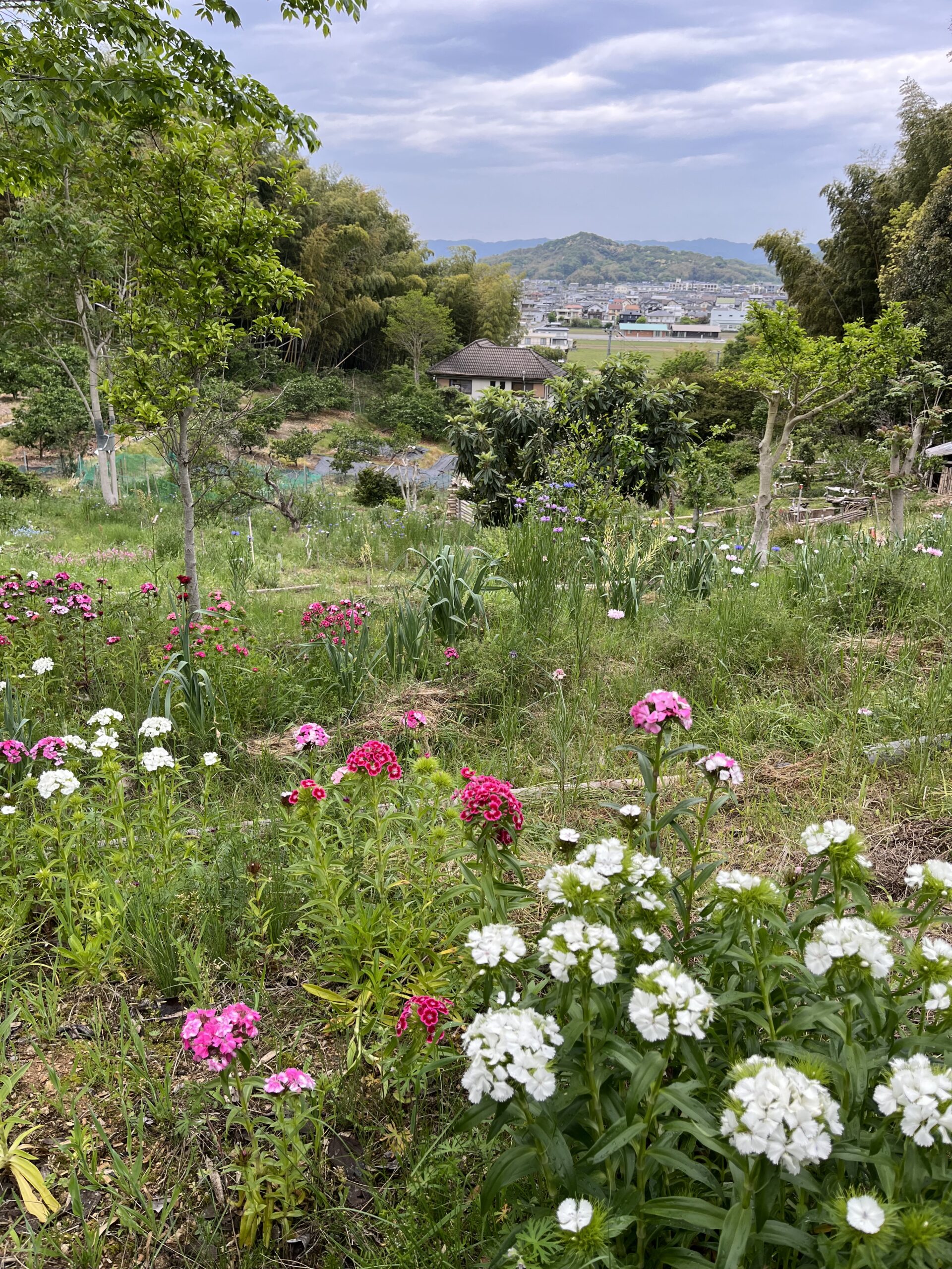 斜面にある自然農法の畑をご案内していただけた。